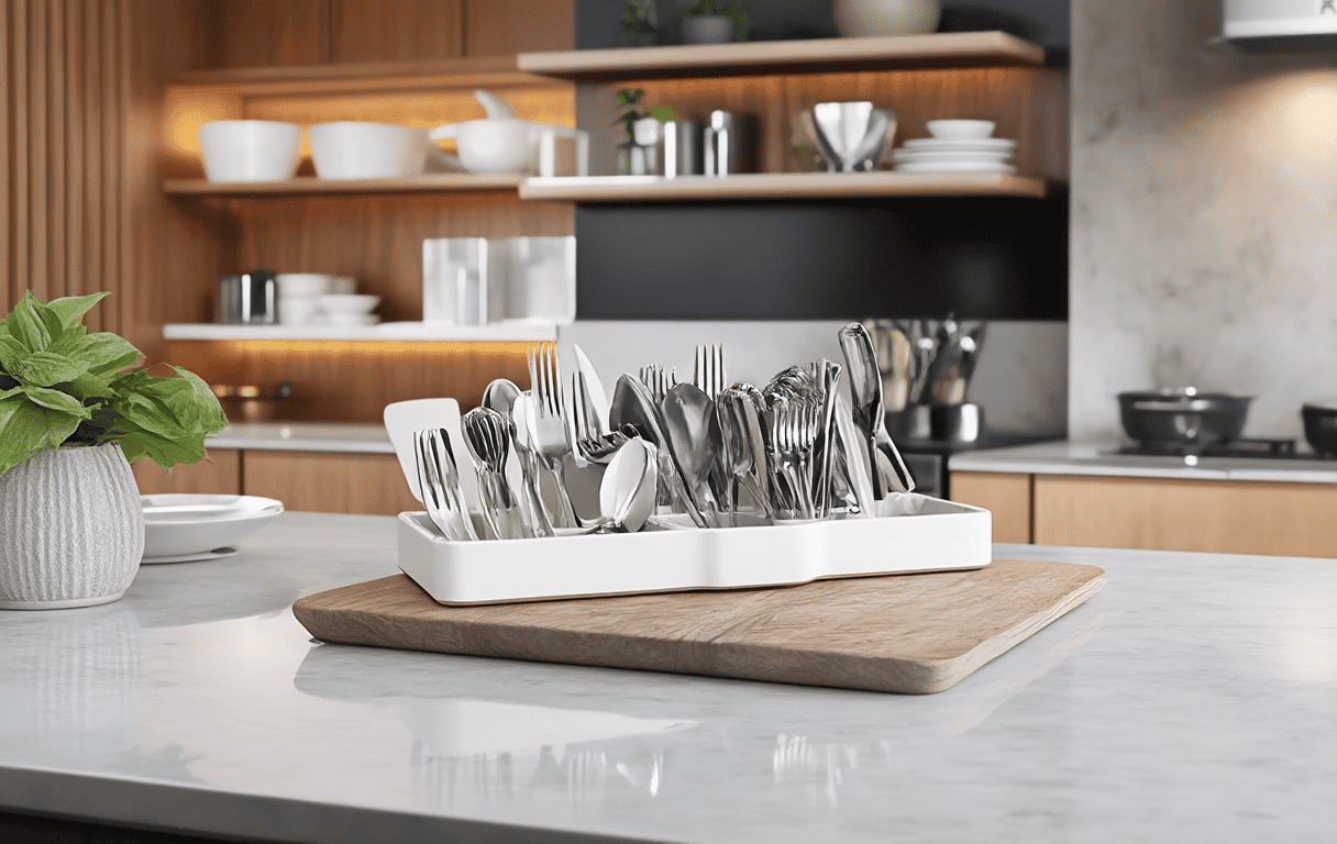 Ein guter Besteck Organizer verhindert Unordnung in der Küchenschublade und sorgt für effiziente und stilvolle Organisation, was die Küchenarbeit erleichtert.